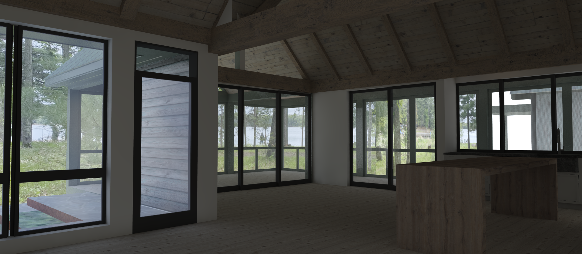 Currently under construction. This new lakeside cabin, tucked among pine and birch, offers a serene escape shaped by Scandinavian restraint. Clean lines and natural materials fold the landscape into the architecture: warm wood surfaces, matte black accents, and large glazed panels create a calm, tactile palette. Interior spaces are arranged to playfully frame views, establishing visual connections from the front approach, through a light-filled living sequence, and out to the water. Sightlines and carefully placed openings choreograph moments of light and reflection, so the exterior forest and shoreline feel present in every room. The result is a simple, refined retreat that balances shelter and openness, inviting quiet moments and a continuous relationship with the lake.